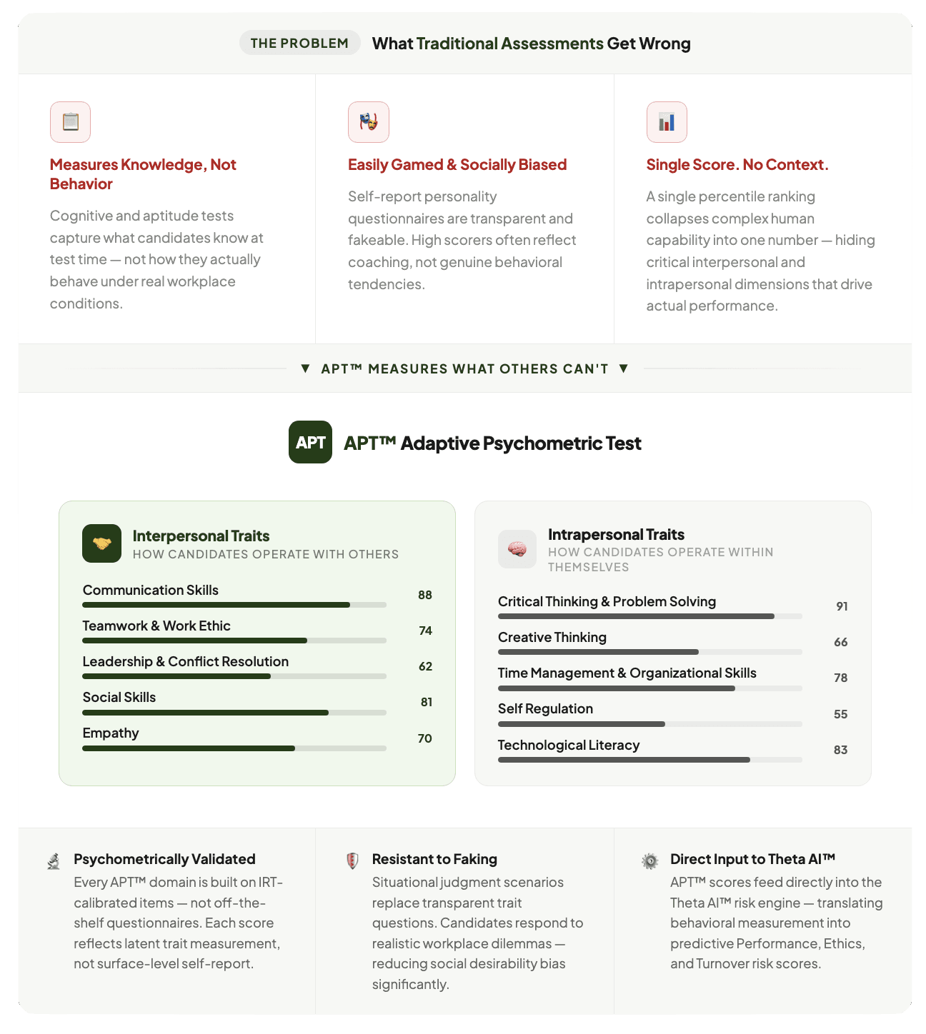 APT™ integrates interpersonal and intrapersonal factors into a unified, predictive framework.