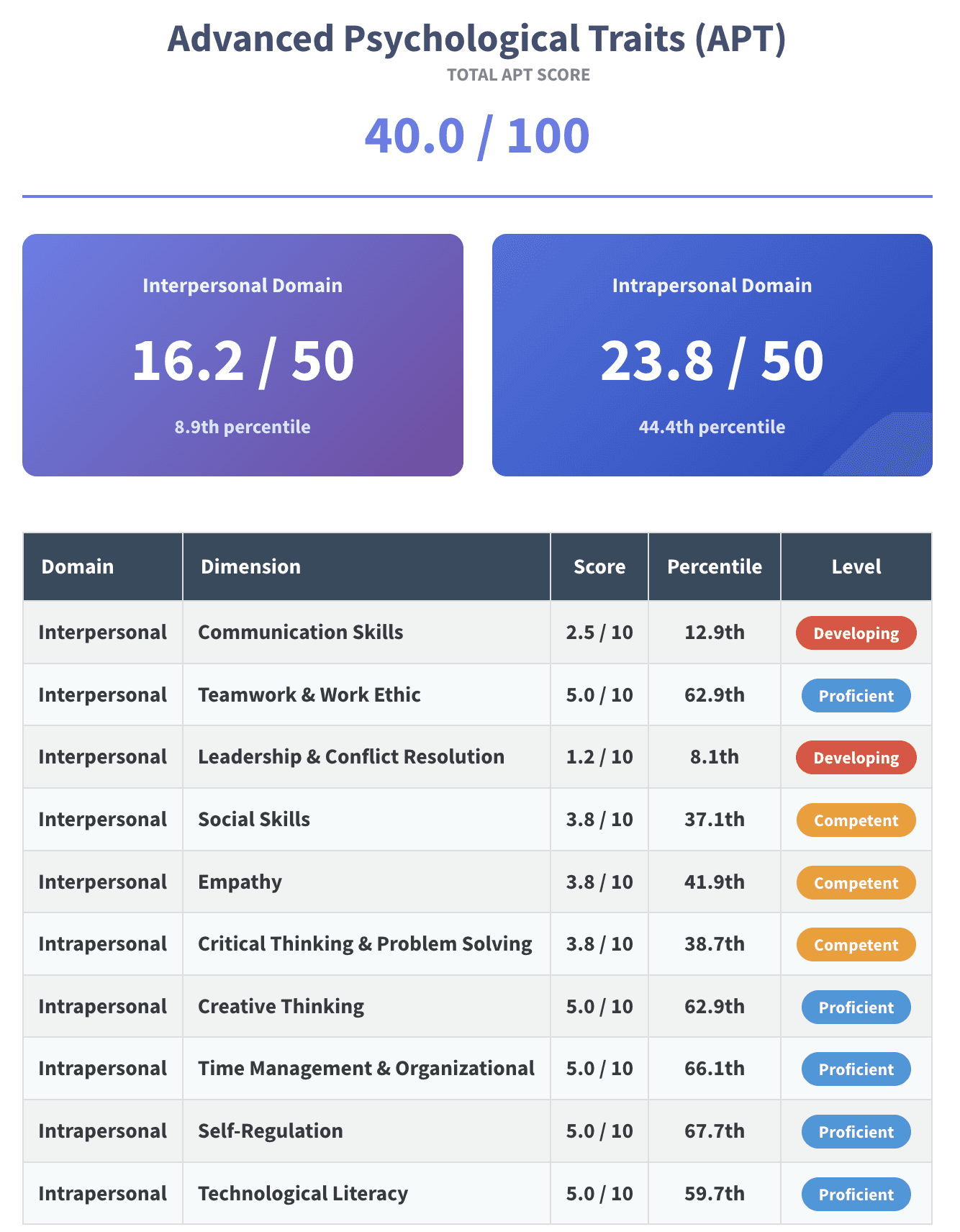 • High intrapersonal proficiency → reliable individual contributors